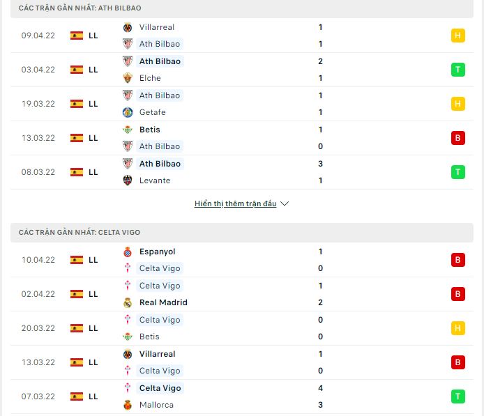 Phong độ gần đây Ath Bilbao vs Celta Vigo:
