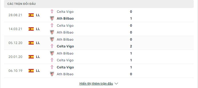Thành tích đối đầu Ath Bilbao vs Celta Vigo: