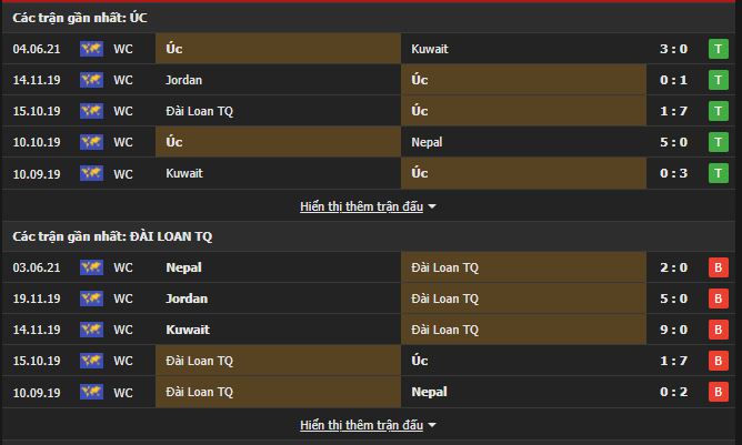 Phong độ gần đây Australia vs Đài Loan: