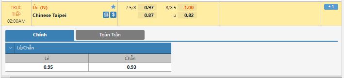 Bảng tỷ lệ kèo trực tuyến trận đấu Australia vs Đài Loan: