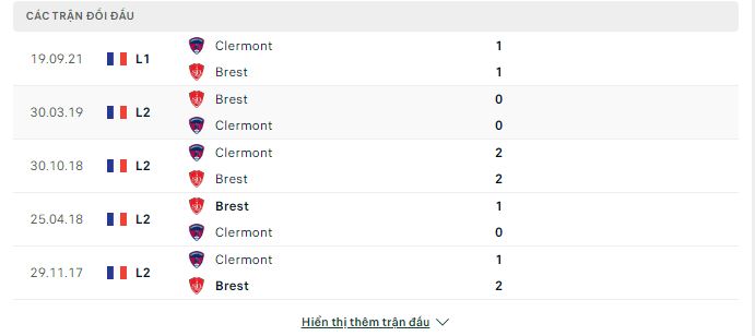 Thành tích đối đầu Brest vs Clermont: