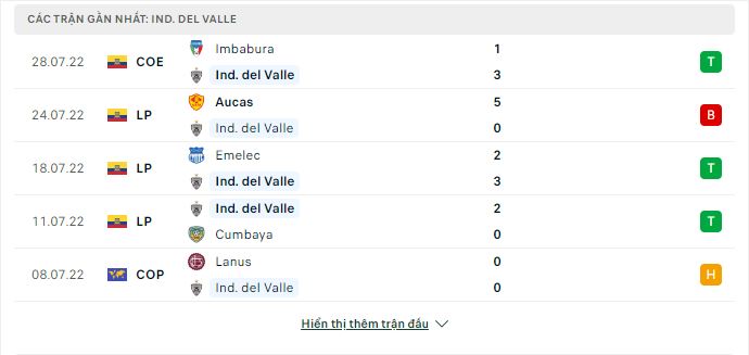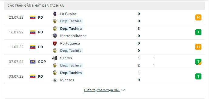 Phong độ gần đây Deportivo Tachira vs Independiente del Valle