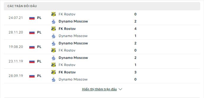 Lịch sử đối đầu Dynamo Moscow vs FK Rostov
