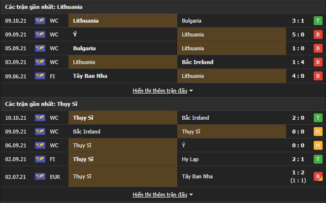 Phong độ gần đây Lithuania vs Thụy Sĩ: