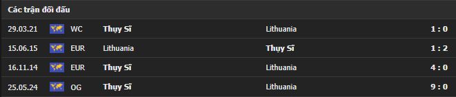 Thành tích đối đầu Lithuania vs Thụy Sĩ: