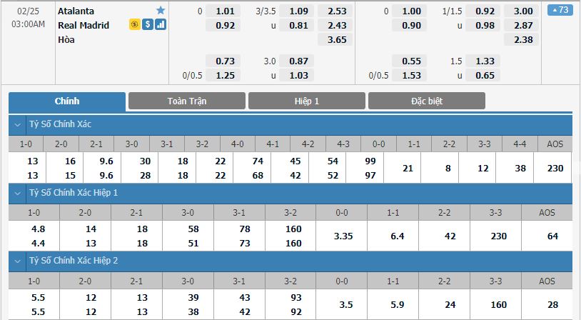 - Tỷ lệ kèo bóng đá Atalanta vs Real Madrid