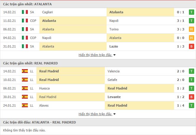 Thống kê phong độ & Lịch sử đối đầu Atalanta vs Real Madrid