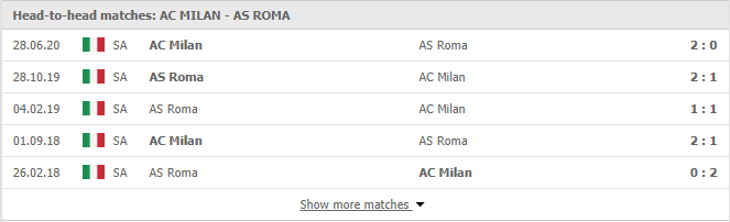 Thống kê phong độ & Lịch sử đối đầu AC Milan vs AS Roma