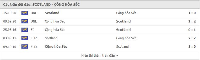 Thành tích đối đầu Scotland vs CH Séc
