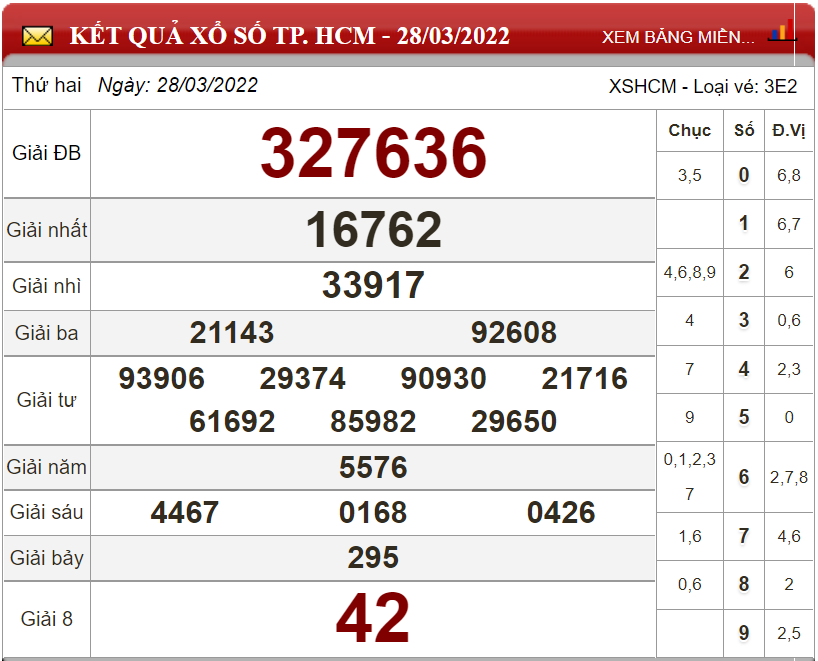 Kết quả lô đề theo xổ số TP.HCM ngày 28/3/2022
