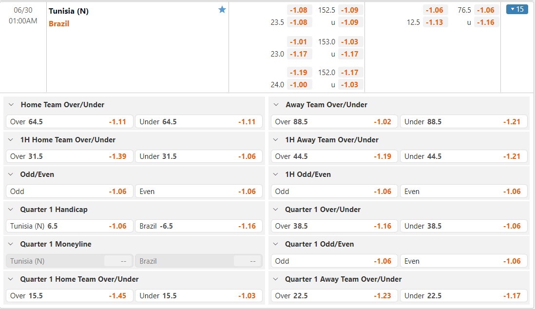 Bảng tỷ lệ kèo Tunisia vs Brazil